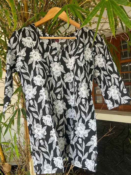 Black Floral Printed Short Kurti - Product Code: DSS056