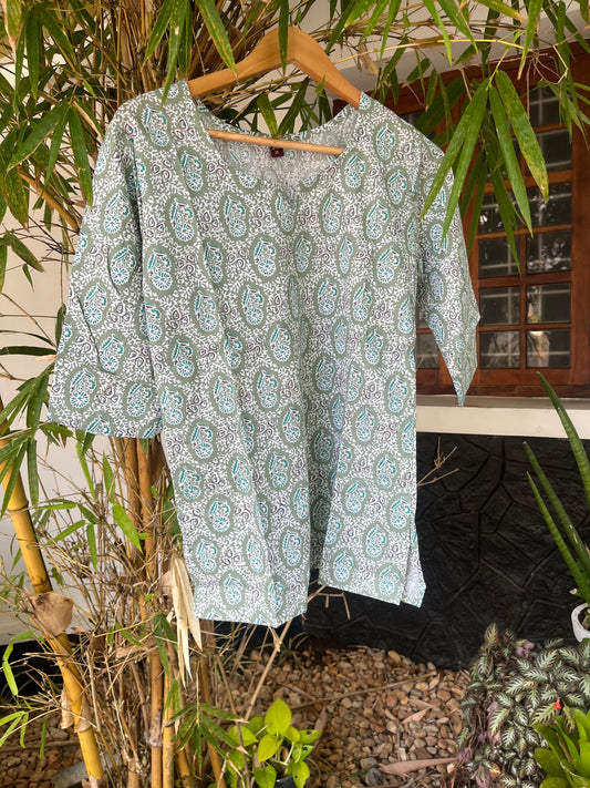 Pista Green Printed Short Kurti- DSS060