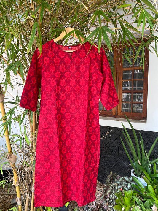 Sold outRed Floral Short Kurti - DSS061