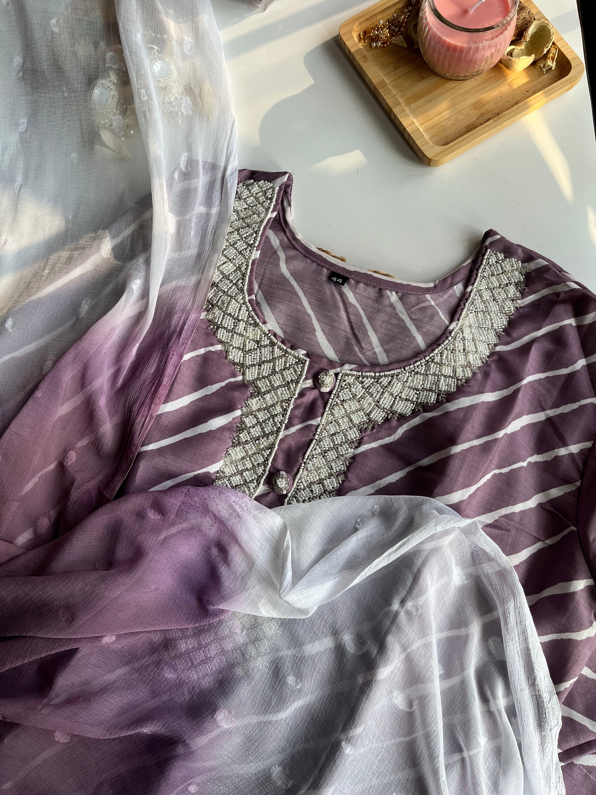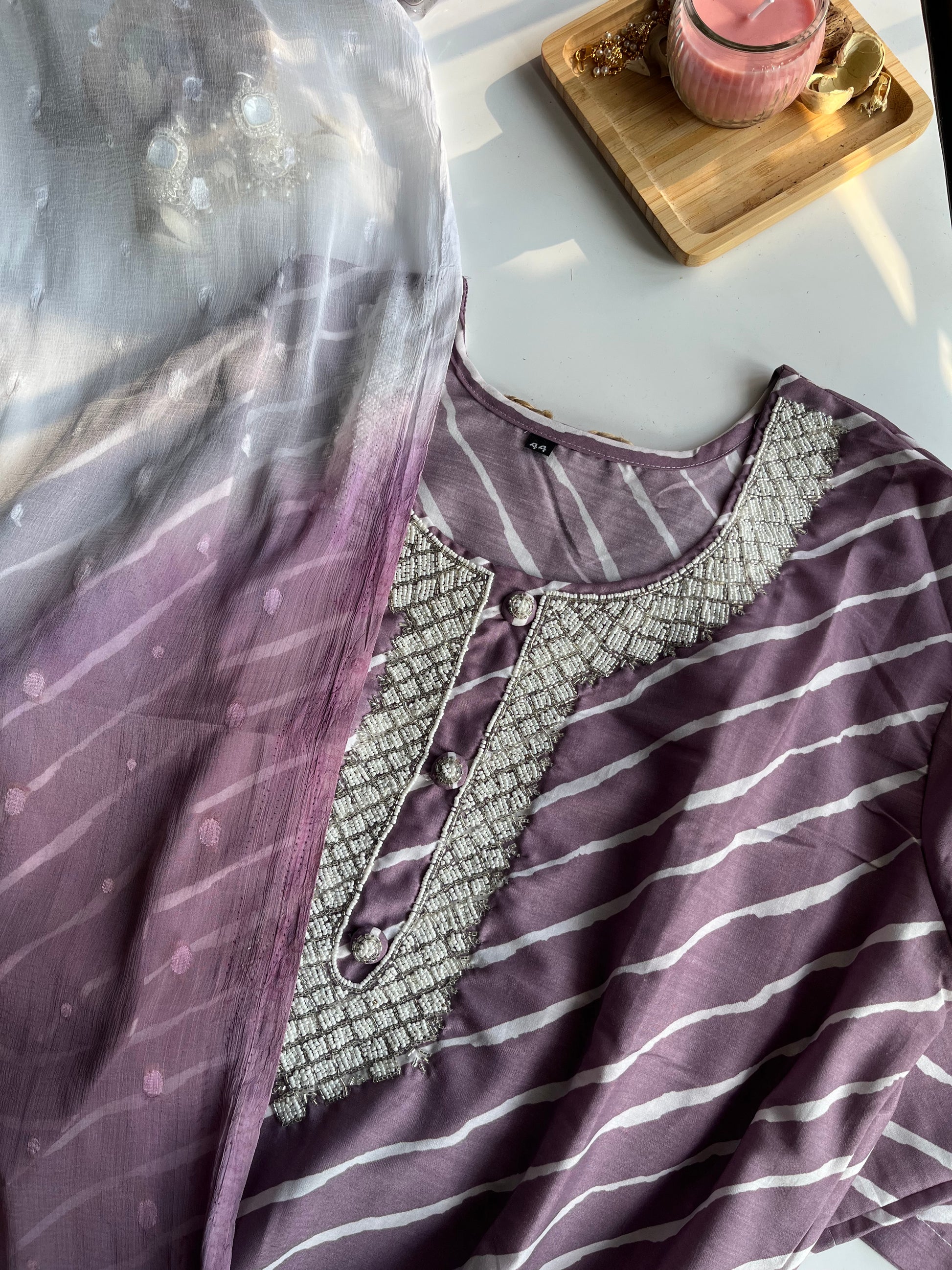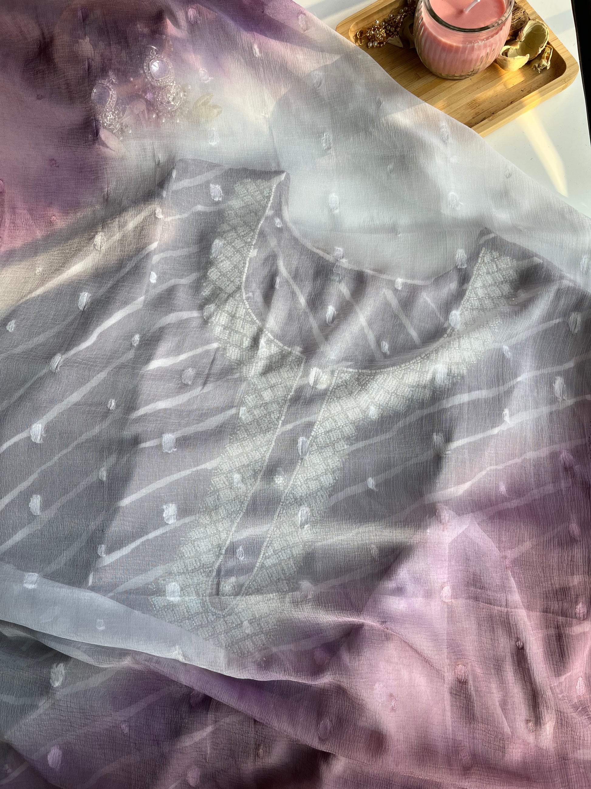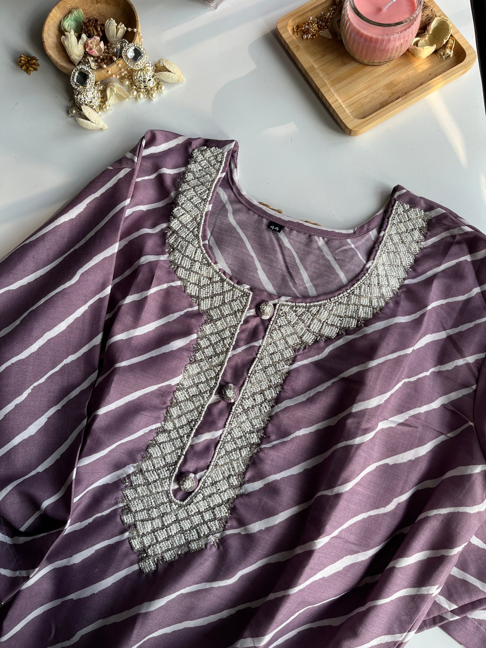 Embrace grace and elegance with the Pavithra Kurti Set, a premium ensemble in a soothing lavender hue. Featuring exquisite handwork on the neckline, this kurti set is paired with a matching dupatta and plain bottom to complete the look. Designed for festive occasions, weddings, and celebrations, Pavithra offers a perfect blend of tradition and modern style.