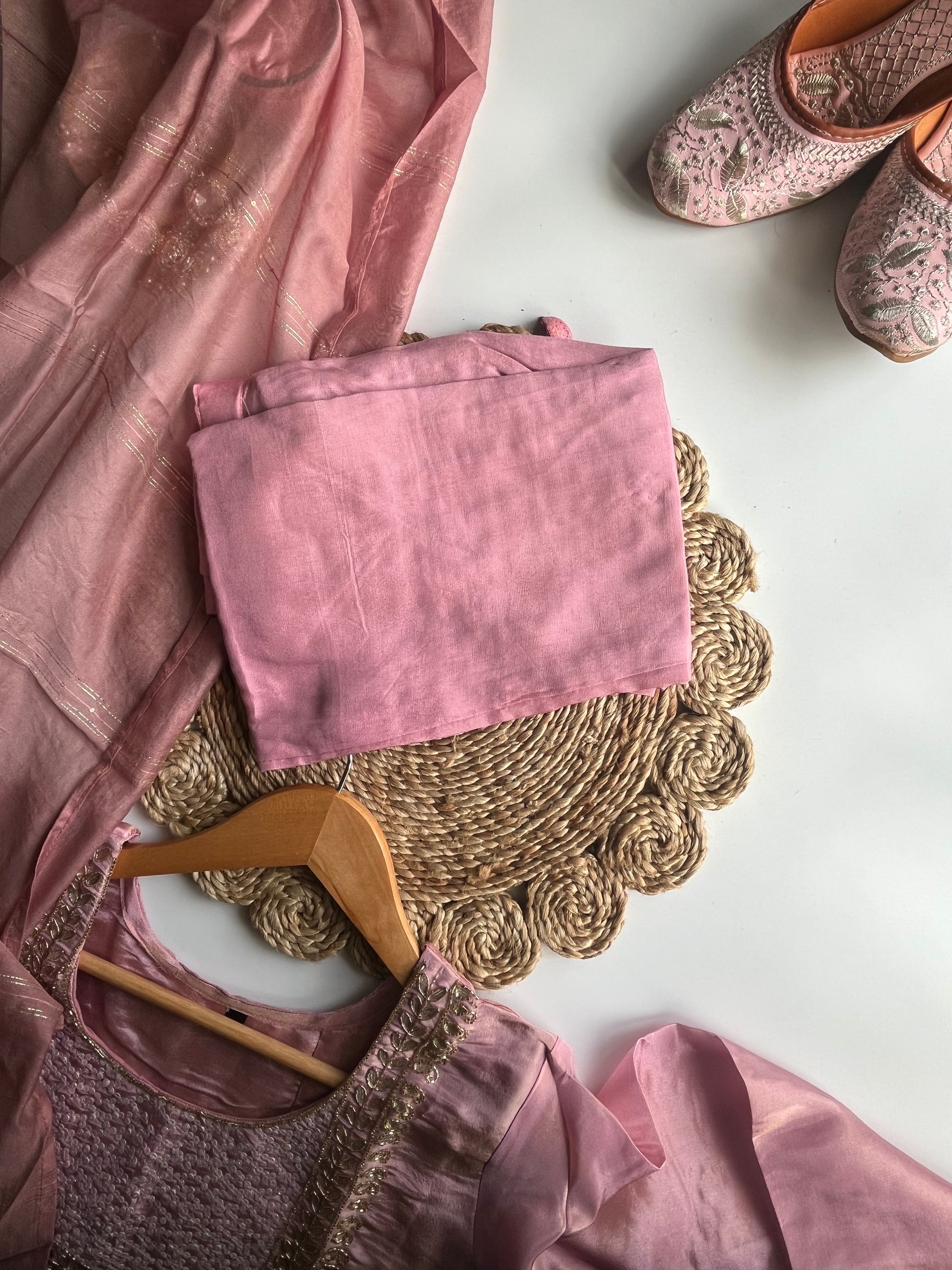 Phoolvati - Baby Pink Tissue Silk Kurti Set