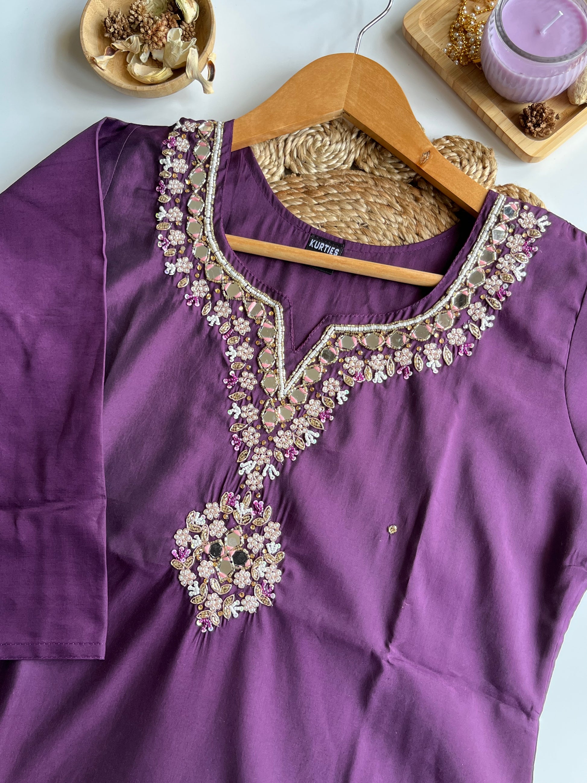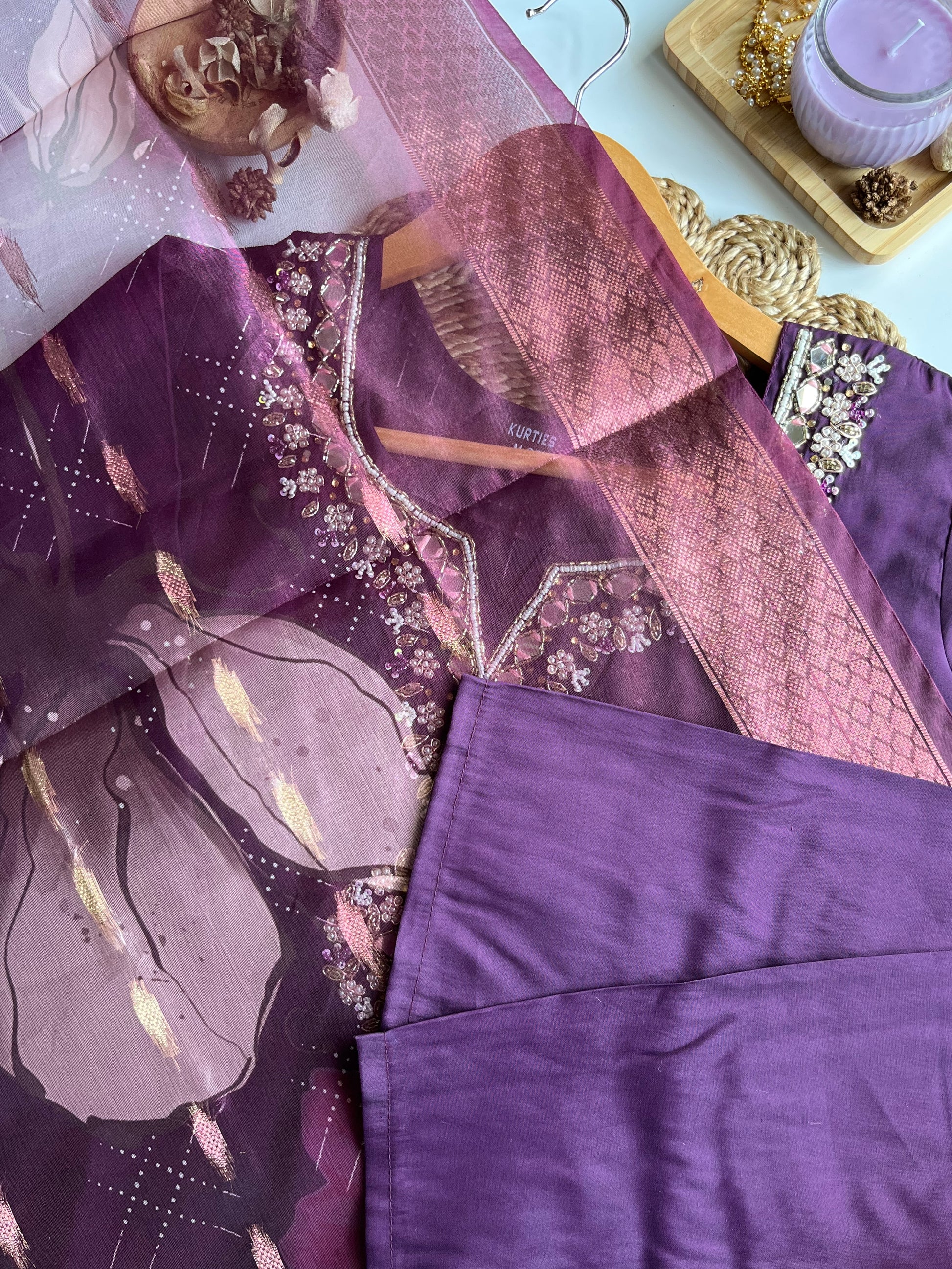 Tarangini - Rich Purple Roman Silk Kurti Set